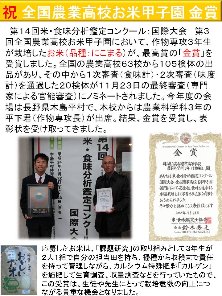 農業高校の受賞者