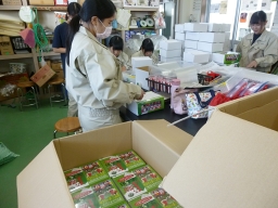 | 11月21日放課後 段ボール箱組立 | 11月24日放課後 梱包作業 | ||