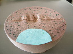 ・種を蒔かない顔の部分 には紙を貼っておく。 ・種を蒔く部分には緑のマジック で印を付けておく。 |