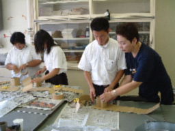 | 作業に取り組むメンバー | 段バールの型づくり | |