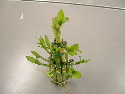 | 1年生のメンバ−による作業 | 「完成」束ねられた萬年竹 | |