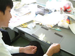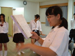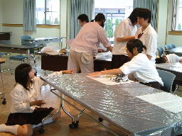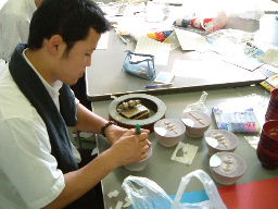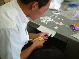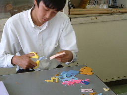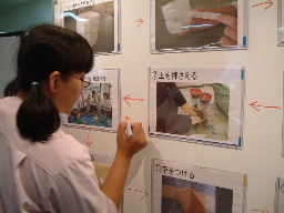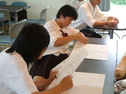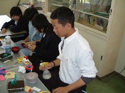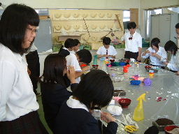 | 黙々と作製。出来上がる につれて中学生も笑顔 |