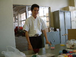 | 準備作業の打ち合わせ | トマト用のプランターに土を 入れ、目に触れないように、 芝人形作りに専念できる ように倉庫に入れる。 |