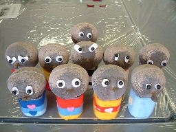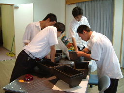 《芝人形作製キットの準備》 担当するメンバー用・参加者用を 上下2段に重ねておく。 |