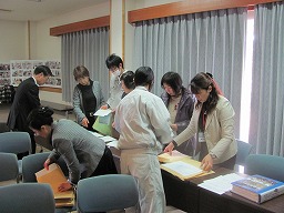 | 配布資料の準備(2年生) | イスに配布資料の配付(2年生) | |||