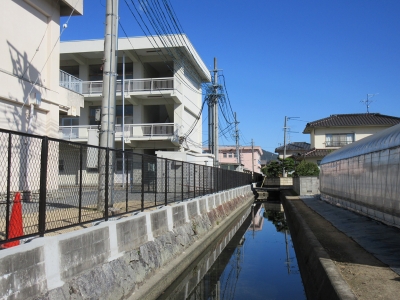 8月から始まって気になっていた学校を囲むコンクリートブロックがフェンスになりました。by PC部
