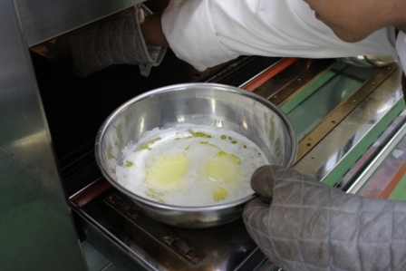 焼き上がったら、「米粉シュトーレン」を溶かしバターに1分漬けます。