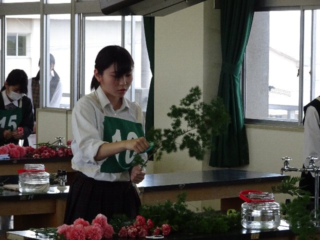 今年度の最初の農業クラブ競技となる、フラワーアレンジメント競技県大会が6月1日(金)、興陽高校で開催されました。県内の農業関係高校8校から代表者15名が参加し、フラワーアレンジメントに関する知識や技能を競いました。本校からも園芸科学科3年原田さん、石田さんの2名が参加し、石田さんが入賞(優秀賞)しました。