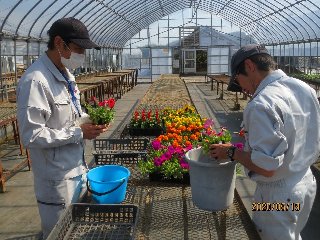 3号ハウスに「つるなしインゲン(恋みどり)」を播種しました。