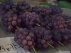 ブドウ(高妻)の調査をしている専攻生が、収穫したブドウの重さや大き、皮の色などを果樹専攻室で調べていました。課題研究に使うデータをとるため、一房ずつ丁寧に作業をしていました。収穫した高妻は粒がとても大きく重さも一房800グラムほどあり、すごいボリューム感がありました。しかし、皮の色は黒色に近いものから赤色に近いものまで様々で、房によって違いがありました。この日収穫したブドウは1パック500円で校内で販売され、用意した25パックは10分もしないうちに完売となったようです🍇。