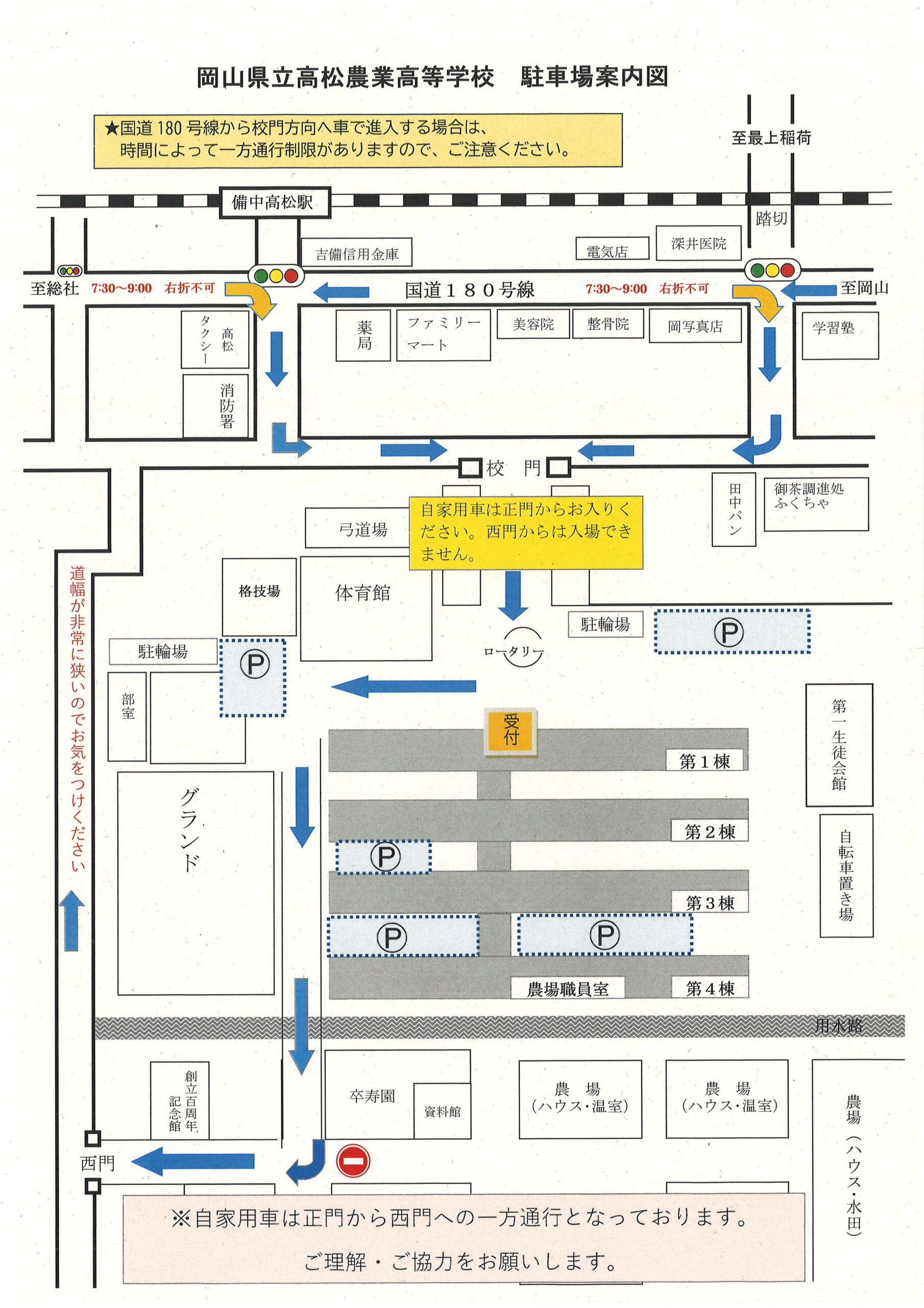 ・車で来校される方は添付の地図をご確認ください。