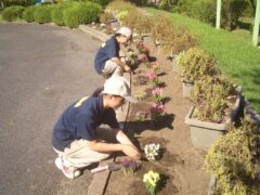 10月15日(水)総合実習の時間を利用して、おもちゃ王国での植栽実習に草花専攻3年生11名がいってきました。6月に植えた草花を秋冬用の花苗に植え替えです。縁あっておもちゃ王国での植栽実習は令和3年度からスタートし、今年で5年目となり専攻生のよい実習の機会となっています。