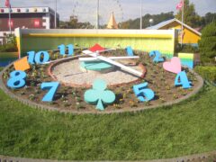 今回は6月と同様におもちゃ王国入口の花時計、その周辺、園内のライン花壇の植え替えを行いました。使用する草花は主に8月に学校で種をまいて栽培していたもので、この日はハボタン、パンジー、ビオラ、ノースポール、キンギョソウ、ストック、アリッサムなど7種類約800ポットを使用しました。メインの花時計の装飾デザインは専攻生が考えたもので、色々と試行錯誤しながらもやり甲斐を感じながら実習が出来ていたようです。おもちゃ王国に来場した方に少しでも楽しんでいただけるよう、くつろいでいただけるようにという思いを込めてデザインしました。機会があればぜひ御覧ください。