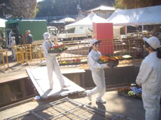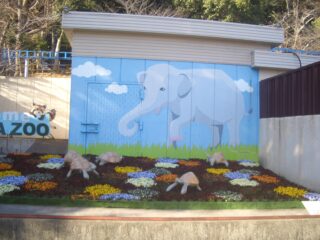 令和3年度から参加している池田動物園の「動物たちと花フェス」の開催にあわせて、この日は2年生の草花専攻生13名がゾウ舎の装飾に行ってきました。