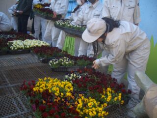 使用した草花苗は、9月下旬に種をまき、12月中旬にはケースに花を植え、設置に行くのを楽しみに手入れをいてきました。是非現地で見てもらえたらと思います。