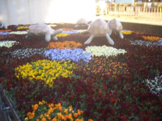 毎年テーマを決めてオブジェを制作し、それに合わせた草花苗による装飾を行っていますが、今年は池田動物園にいる動物で今までにないものという観点で「カメ」を選択し、中でも一番大きく成長する「ケヅメリクガメ」を制作しました。