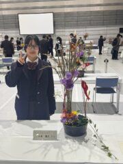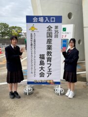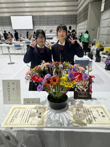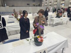 10月25日(土)に福島県で開催された全国産業教育フェア福島大会の第24回全国高校生フラワーアレンジメントコンテストに園芸科学科3年の難波さんと2年の山本さんが岡山県代表として参加しました。二人は6月に行われた農業クラブ・フラワーアレンジメント競技県大会で上位2名となり、全国大会の出場権を獲得していました。