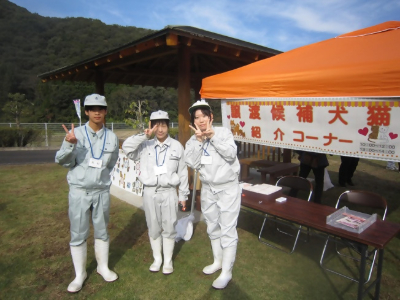 今年で第22回となる動物愛護フェスティバルでは、譲渡候補犬猫の紹介のスタッフとして主にカウントの係をしました。紹介パネルを見て気になるイヌを犬舎から出し、フレンドスペースでおやつをあげたり触ってもらったりしてもらう補助もしました。譲渡希望者には飼い方講習会の案内や予約を取ることの紹介もできました。今回は10頭の犬と12匹の猫が対象でした。新しい家族のもとへの譲渡が決まることを願いながら、来場者の方とイヌやネコの談話を楽しくすることができました。本校の保護犬「むぎ」とよく似たわんこも来場していました。来場していた犬種について飼い主の方から教わったり、愛護センターの方にも飼い主としての義務など数多くのことを教わり、有意義な時間を過ごすことができました。皆さま、大変お疲れさまでした。そして、ありがとうございます。