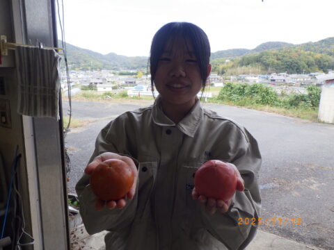 この日は果樹専攻の3年生が甘柿の「富有」という品種を収穫しまた。