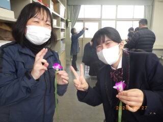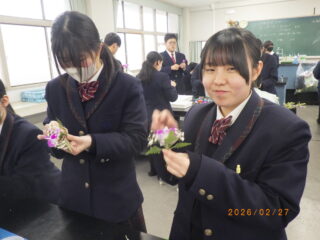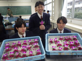 約3時間ほどの時間をかけて230個のコサージュを作ることが出来ました。長く園芸科学科の伝統として続けている行事ですが、明日の3年生の晴れ舞台に少しばかり華を添えられたらと思います。
