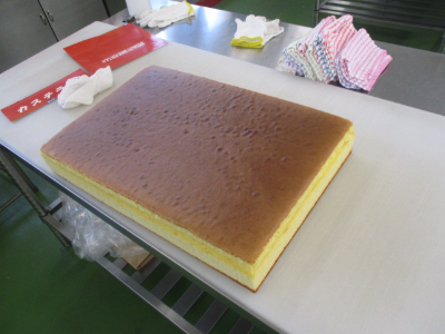 春のふれあい市の販売に向けて、カステラの製造が始まりました。