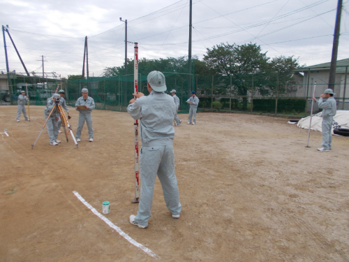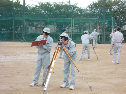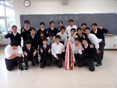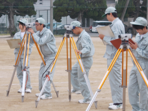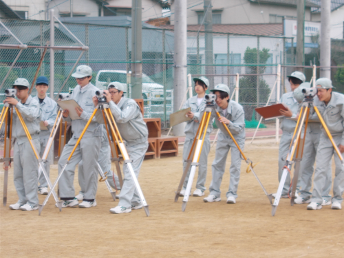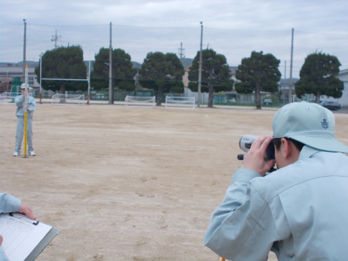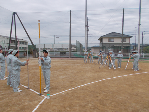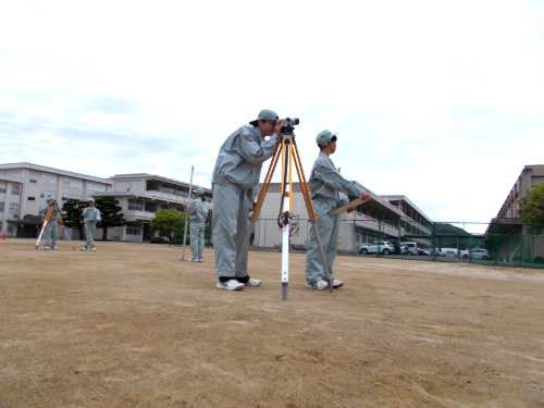 農業土木科2年生最初の総合実習の時間で「校内測量大会」を行いました。1年生の時に1年間かけて身につけた測量の技術を活かして競い合いました。仲間と力を合わせて熱く楽しく真剣に競技することができました。